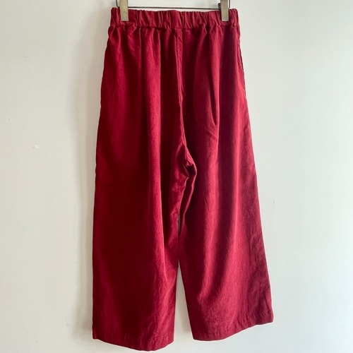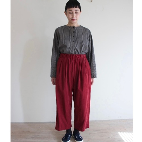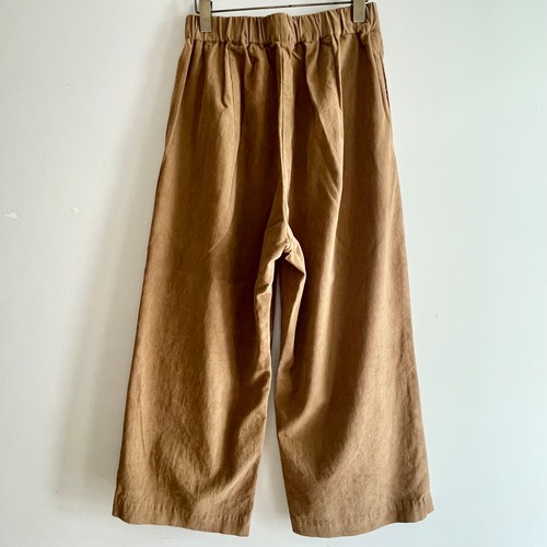 股上深めのほっこりとしたクロップドパンツです。80’sのダボっとしたパンツをイメージしています。ウエストは総ゴムで内側の紐で絞る事が出来ます。サイズは丈の長さが違うレギュラー/トールがございます。
