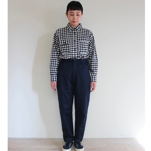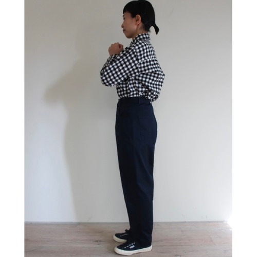 腰回りに少し余裕を持たせた細すぎずきれいなシルエットのソフトスリムパンツです。