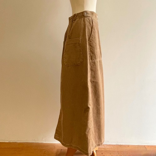 長めの丈がシルエットをきれいに見せ、広がりを抑えたセミタイトな雰囲気のAラインスカートです。後ろ中心にスリットがあり、歩きやすくなっています。