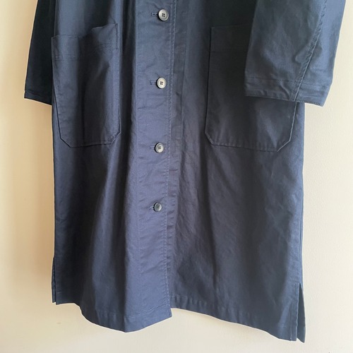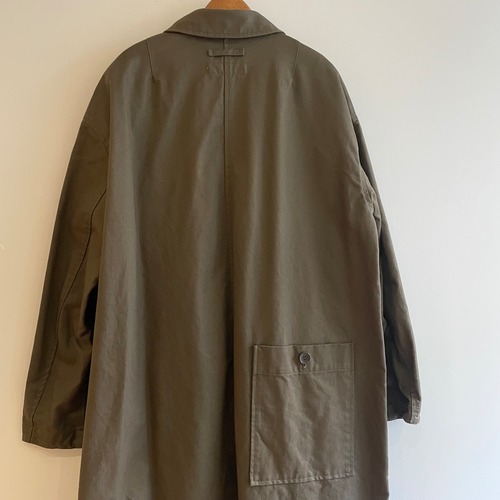 ゆとりのある身幅、アームホールで重ね着がしやすく、長いシーズン活用できるコットンのコートです。