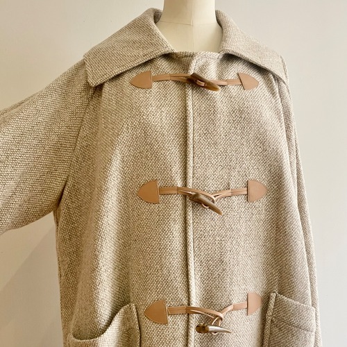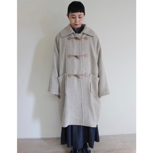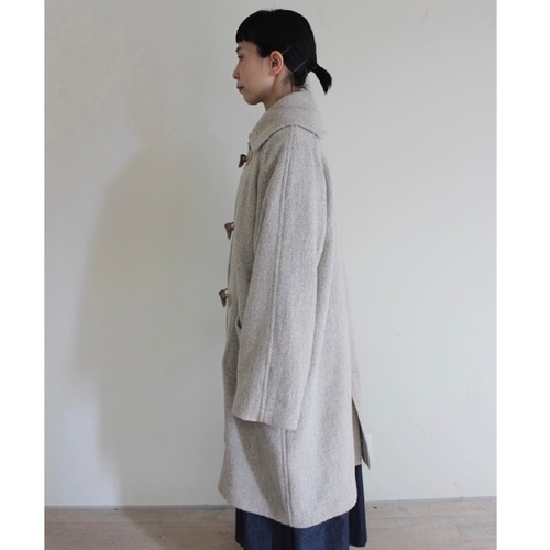 ダッフルコートに使用されるトグルボタンと大きな襟が特徴の気軽に羽織れるフェミニンなシルエットのコートです。