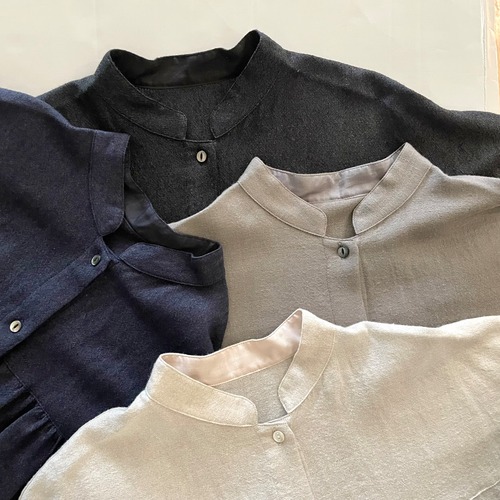 たっぷり身幅でバスト・背中の切替に細かいギャザーを施したロング丈のシャツカーディガンです。ウール糸と麻糸で織り上げ特殊加工により仕上げられたガーゼ生地は起毛タッチで薄手でも空気を含み暖かく、重ね着アレンジをお楽しみいただけます。