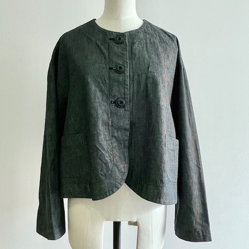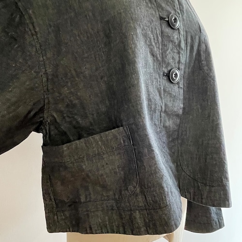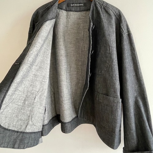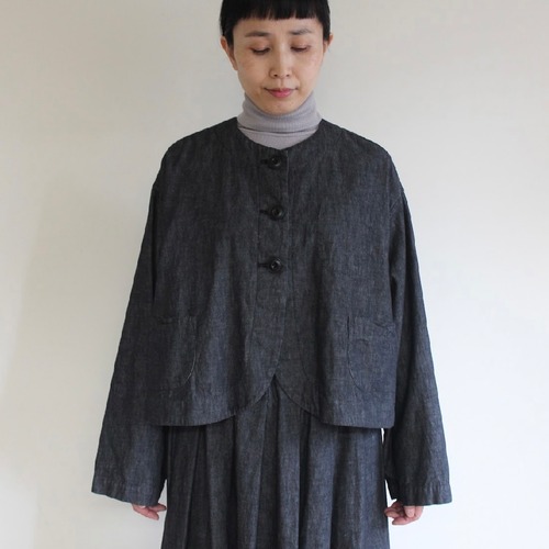 改まった雰囲気がありながらデイリーに活躍する気軽さのあるブラックデニムのボレロジャケットです。しなやかな質感のデニムは様々な素材と相性が良く、幅広いコーディネートをお楽しみいただける一着です。左胸に内ポケットが有ります。