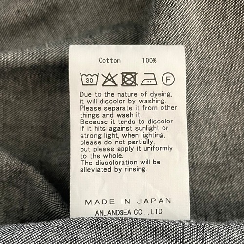 本製品は硫化染めの性質上、摩擦や水濡れによる移染、色落ちがありますので、他の物と分けて洗って下さい。
