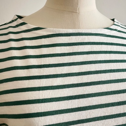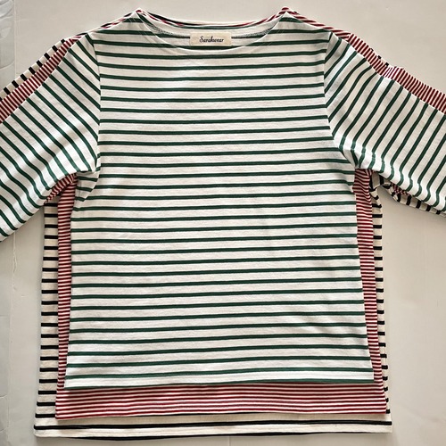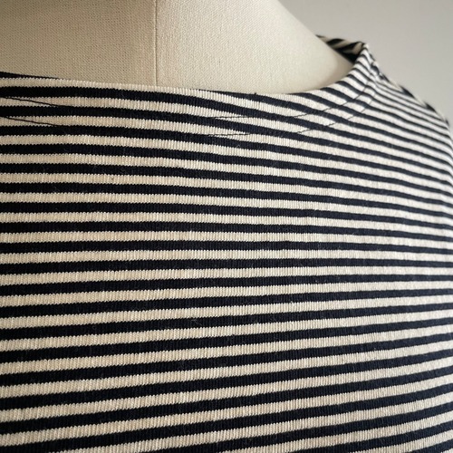 サラウェア定番のボーダーボートネックTee《ロザンナ》がサイズを一新して再登場しました。お好みのサイズ1で選んでいただけます。空気の力で糸を撚り合わせる特殊な製法で紡がれた糸で度詰めに編み立てられたジャージ―生地はしっかりした手触りながら膨らみがありシャリ感の中に柔らかさを持ち合わせ、ヴィンテージな風合に仕上げられています。