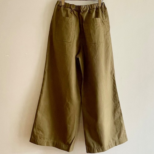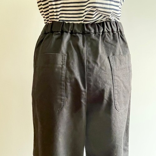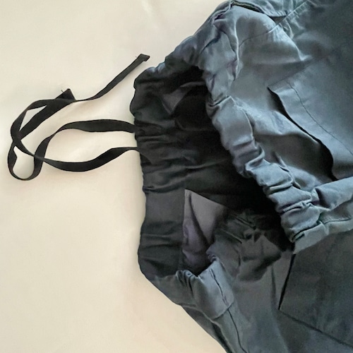 ウエストが一周ゴムでゆったりとした履き心地のリラックスパンツです。ウエスト内側の紐で絞る事が出来ます。
