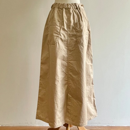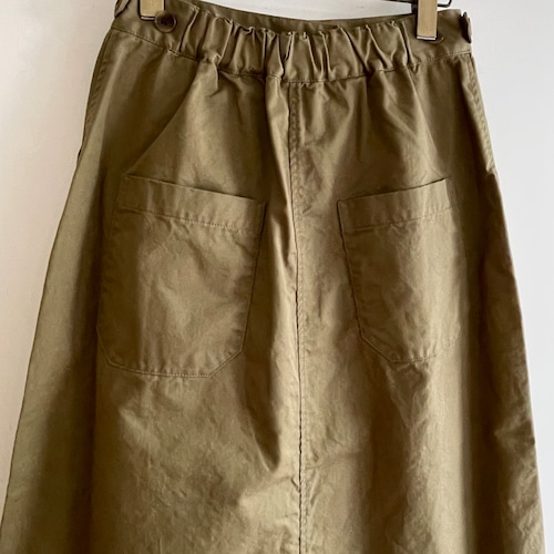 長めの丈がシルエットをきれいに見せ、広がりを抑えたセミタイトな雰囲気のAラインスカートです。後ろ中心にスリットがあり、歩きやすくなっています。