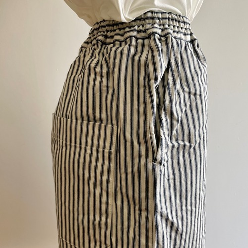 岡山県で生産された9ozのヒッコリーストライプ生地を使用しています。ハリのある丈夫でしっかりとした質感で着心地が良く、デイリーウェアに適しています。