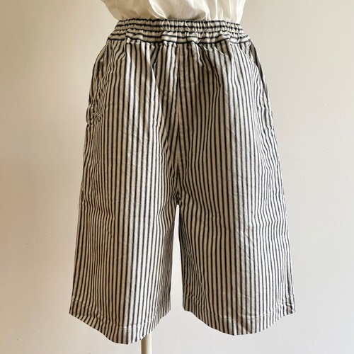 膝がギリギリ出ない長さの安心設計でウエストは総ゴムのお気楽な履き心地の【デイオフパンツ】です。