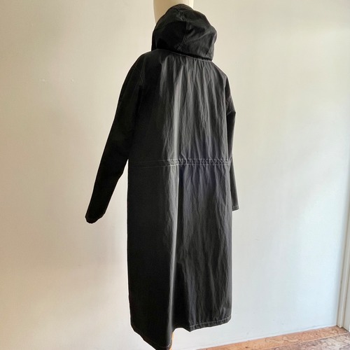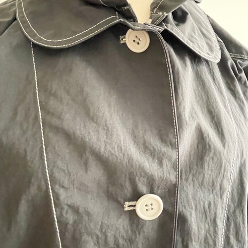 フードを外してステンカラーコートとしても着てもOK、ボタンで簡単に取り外しができて雨が降っていないときにも着れるデザインです。