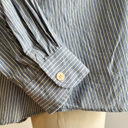 細かな織り柄模様の入ったストライプ生地に洗い加工がされ、ナチュラルな風合いに仕上げられています。柔らかくドライな肌触りで吸水性に優れています。