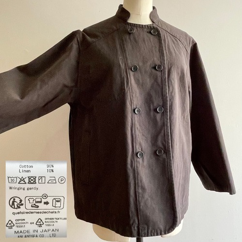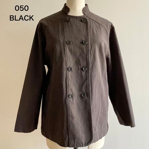 サラウェアで時折登場するクック ジャケットです。ボタンを留める位置で表情を変えられます。右胸に内ポケットが付いています。