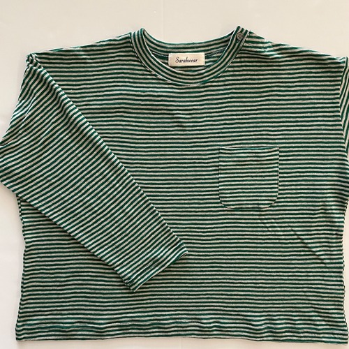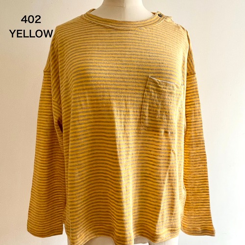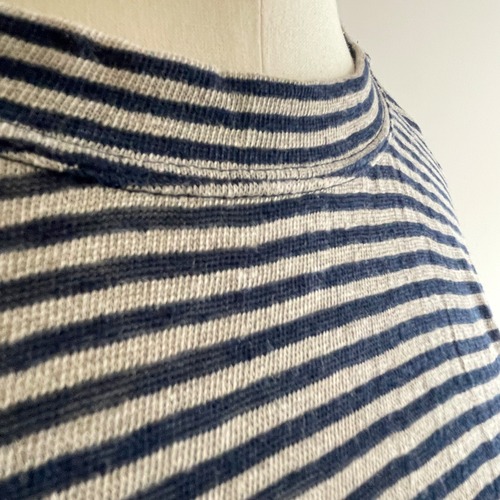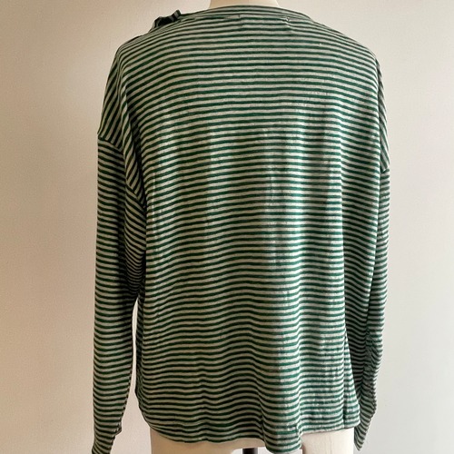 リネン特有のシャリっとした肌触りで清涼感のあるボーダー柄リネンジャージーの長袖Teeです。ボタン付きのクルーネックで着脱ぎがしやすく、ポケットもアクセントになっています。薄手で通気性が良く、吸湿、速乾性に優れ、ゆったり身幅で夏でも快適な着心地です。