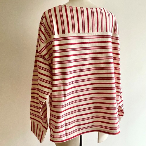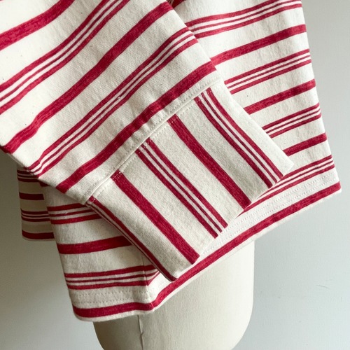 切替で柄の向きを変えたクレイジーパターンのボーダーTee。綿のネップがヴィンテージ風で、色ムラ感のあるランダムピッチのボーダー柄です。