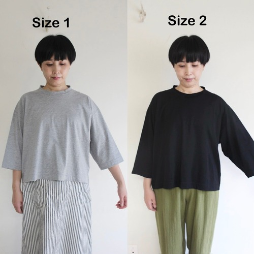 ゆとりのあるボックスシルエットで着丈はスッキリ見え、立体的なパターンで前後差がついています。お好みのゆとり感で選んでいただける2サイズ展開です。