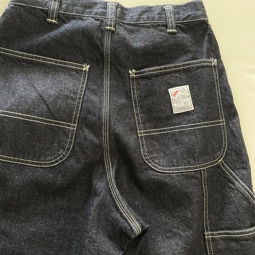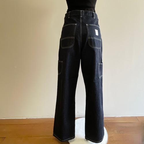 適度な厚みとハリ感でやわらかな着心地のダークなインディゴデニムに白のステッチを効かせた、にぎやかなポケット使いのワークパンツです。お堅くならずに気軽に着れるスッキリとしたテーパードシルエットになっています。