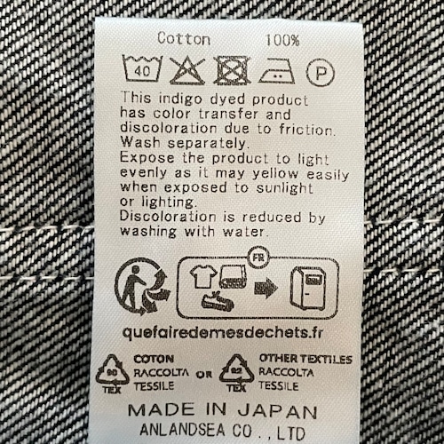 本製品はインディゴ染料の性質上、摩擦や水濡れによる移染、色落ちがありますので、他の物と分けて洗って下さい。