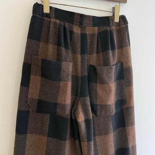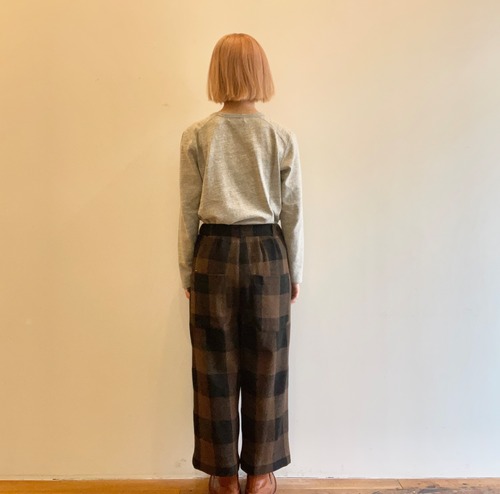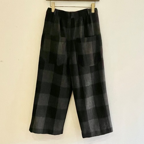 粗めに織られた平織りの生地で軽やかな着心地のウールの暖かみのあるクロップド丈パンツ。ウエスト前側はタックが施され脇はゴムになっていて、ゆとりのある着心地です。
