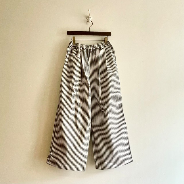 デイリーに着まわせる定番アイテム、ワークテイストの【ペインタースカート】です。締め付けのない台形シルエットで動きやすく、ウエストは一周ゴムで、内側の紐で絞って調節ができます。