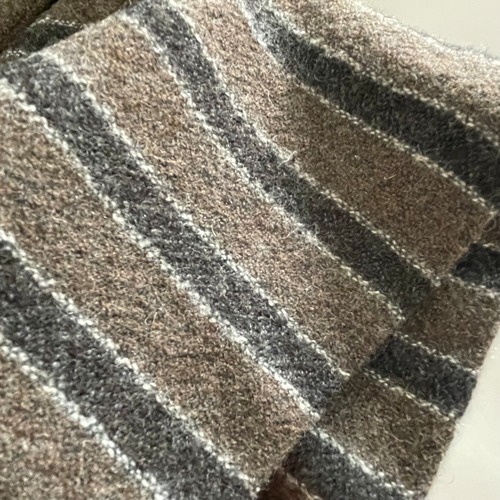 ブルガリア地方の山脈に生息している羊の毛を縮絨加工することにより、軽くふくらみのある風合いに仕上げられたハイランドウールが使用されています。