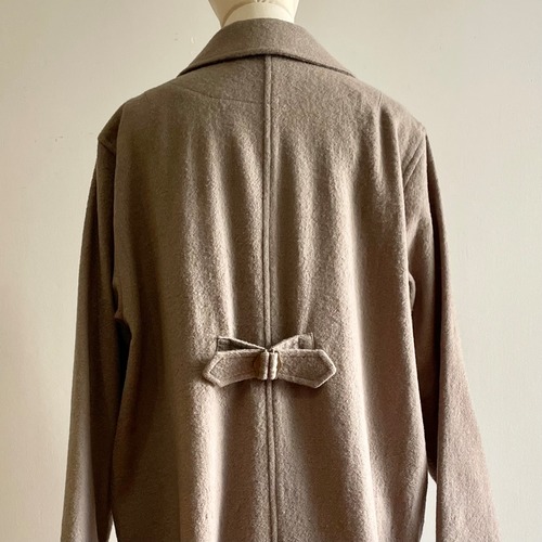 ウールをギュッと圧縮した軽くて保温性に優れた冬の定番素材、フェルティングウールの【おじさんコート】。以前より度々登場する人気モデルです。ゆったりとした作りでたっぷりと生地が使われていますが驚くほど軽い着心地です。丸みのある襟元が優しくレトロな雰囲気です。